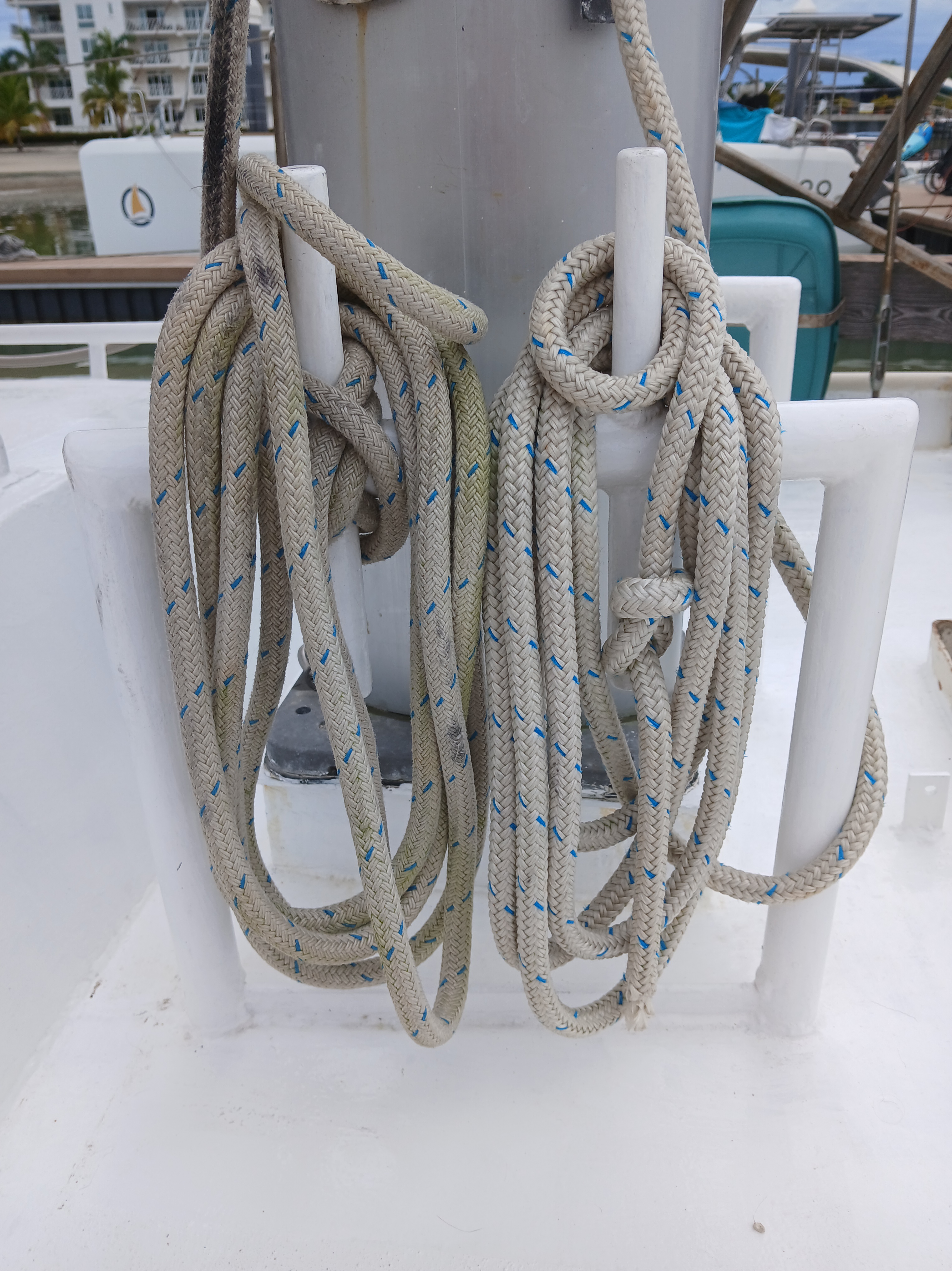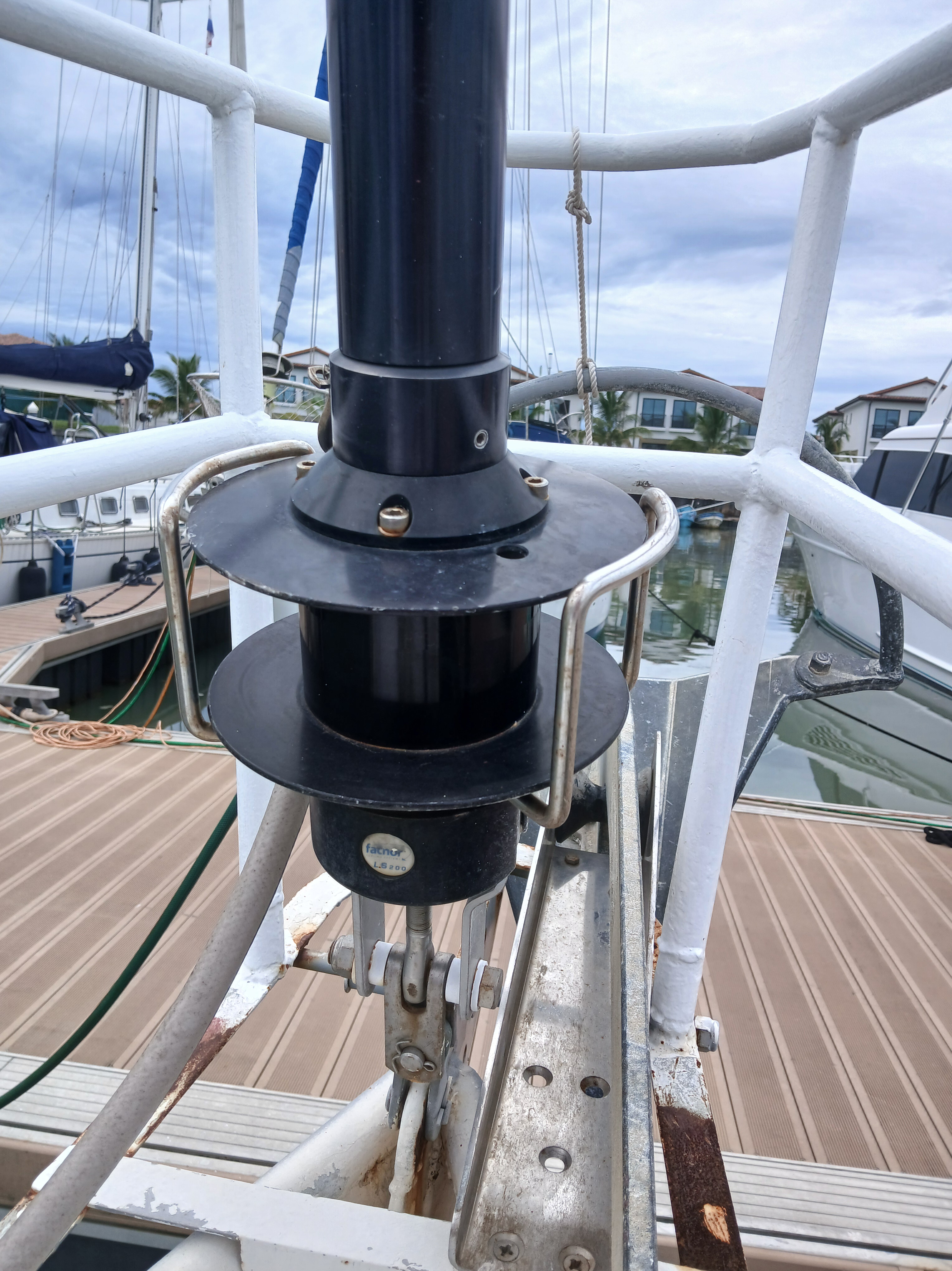 - Shaeffer mainsheet traveller on roof for mainsail and on radar arch for mizzen boom