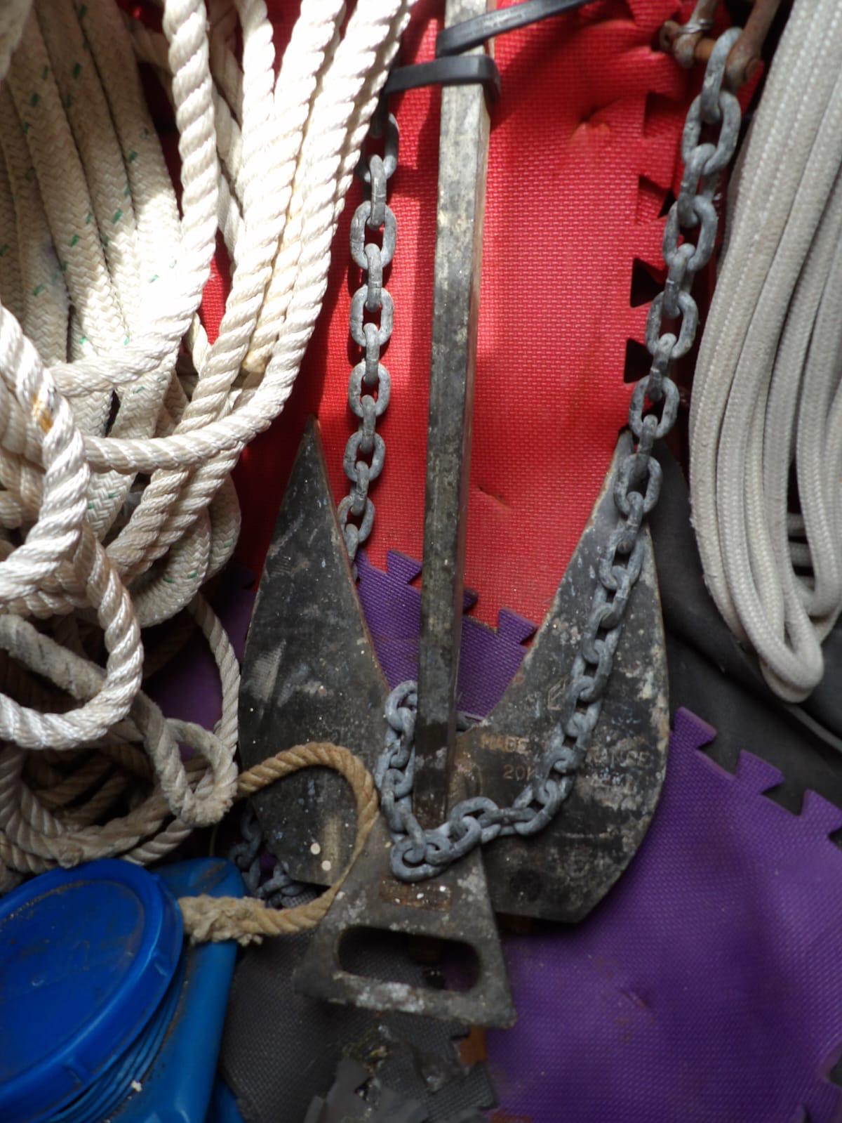 - 3x anchors. 85lb Mantus as main (the best available, double oversized for the boat size), 65lb Delta style, and 45lb French version Danforth.